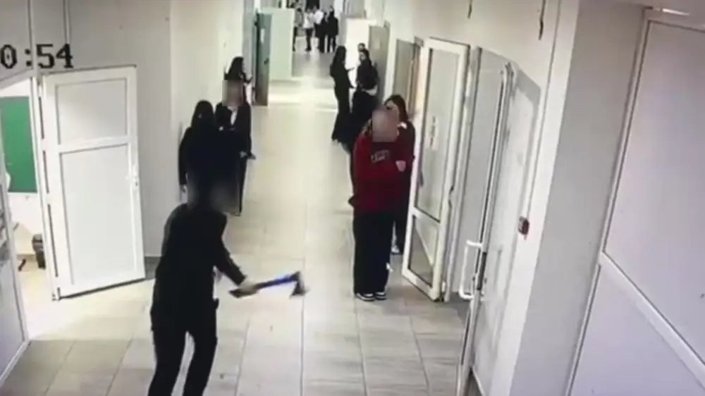 На кадрах видно, как подросток с топором в руках бросился за другими учениками.