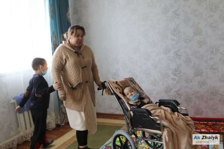Своего жилья у Нургуль с мужем нет, они его снимают в аренду. У них 4 детей - старшие дочери и двое сыновей. Младший сын Акниет - инвалид, у него ДЦП и судорожный синдром.