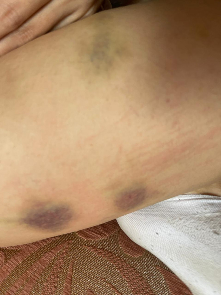 "Я подверглась нападению со стороны неизвестных мне зверей, потому что их нельзя назвать мужчинами. Они вдвоем избили меня на улице, пока я ждала такси. Когда они меня пинали, молила лишь об одном - чтобы я не осталась инвалидом. У меня несовершеннолетний ребенок, боялась, что не смогу сделать все, что запланировала для него. У меня вся голова в шишках", - говорит пострадавшая Асема Мергалиева.