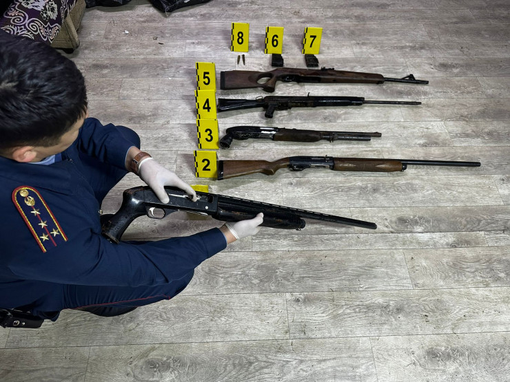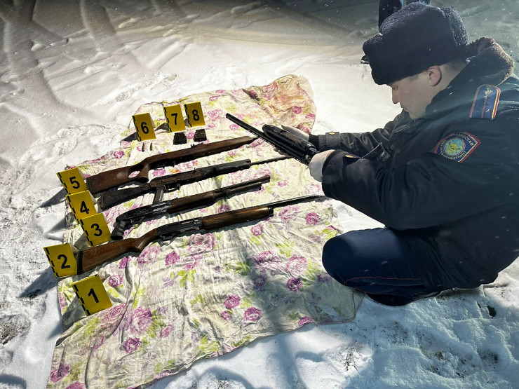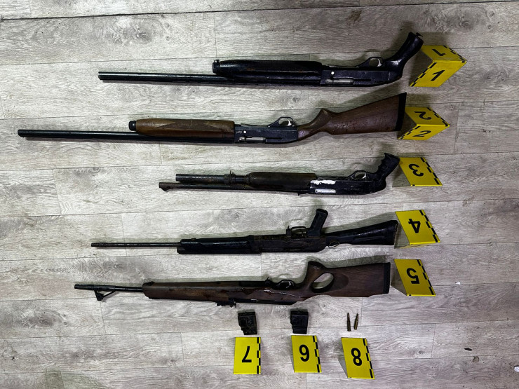 "В ходе оперативных мероприятий стражи порядка изъяли два мешка, внутри которых были 3 единицы гладкоствольных ружья 12-го калибра, 1 единица охотничьего ружья марки "Сайга" 410 калибра, а также нарезное ружье марки "Вепрь" и две обоймы с 2 патронами калибра 308 и 7.62 миллиметра.