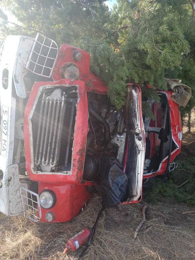 "В Бауртальском лесничестве в пути на засечку пожарная машина врезалась в дерево и опрокинулась. В результате ДТП на месте погиб химбоец 1985 года рождения, 62-летний водитель находится в тяжелом состоянии", - говорится в сообщении.