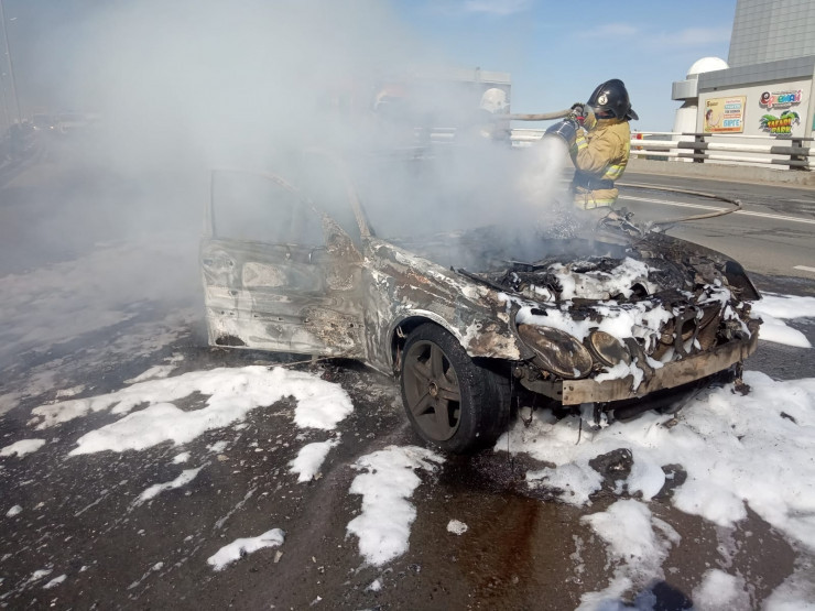 "Поступило сообщение о том, что в городе Атырау по улице Курмангазы, рядом с торговым домом "Тамаша", на мосту горит автомобиль. По прибытии к месту вызова, на улицу Курмангазы, на мосту произошло возгорание автомобиля Mercedes-Benz Е320", - сообщили корреспонденту в областном ДЧС.