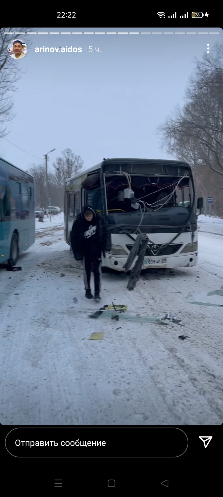 В момент столкновения автобусов тиктокер Айдос Аринов был за рулем автобуса №43 марки Yutong.