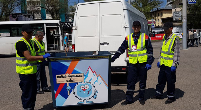 В этом году компанией RG Brands помимо обеспечения водой бегунов была организована важная работа на всем маршруте - работала команда волонтеров, были собраны и утилизированы все пластиковые бутылки, оставшиеся после марафона. Отдельная работа проводилась в зоне финиша - были установлены мусорные баки, работала арка с системой охлаждения.