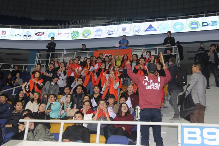 Студенты-болельщики расселись по секторам и принесли с собой барабаны, дудки и атрибутику родных университетов, чтобы поддержать свои команды. Кроме однокурсников, спортсменов пришли поддержать их семьи и друзья. Трибуны бурно реагировали на каждый острый игровой момент, а игроки азартно бились за проход в следующий тур.