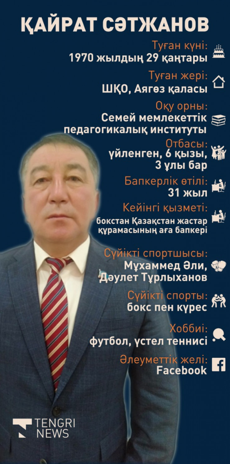 Еске салайық, Қайрат Сәтжанов 6 қыркүйекте бокстан Қазақстан құрамасының жаңа бапкері тағайындалған болатын. Ол бұл лауазымда 2018 жылдан бері команда тізгінінде жүрген Ғалымбек Кенжебаевты алмастырған еді.