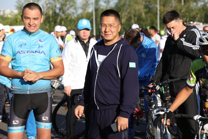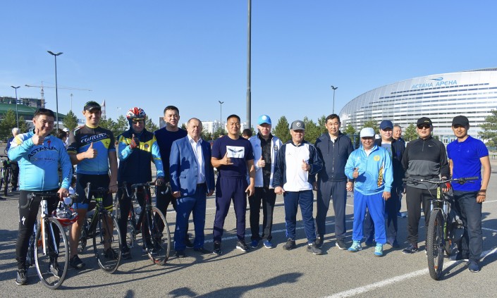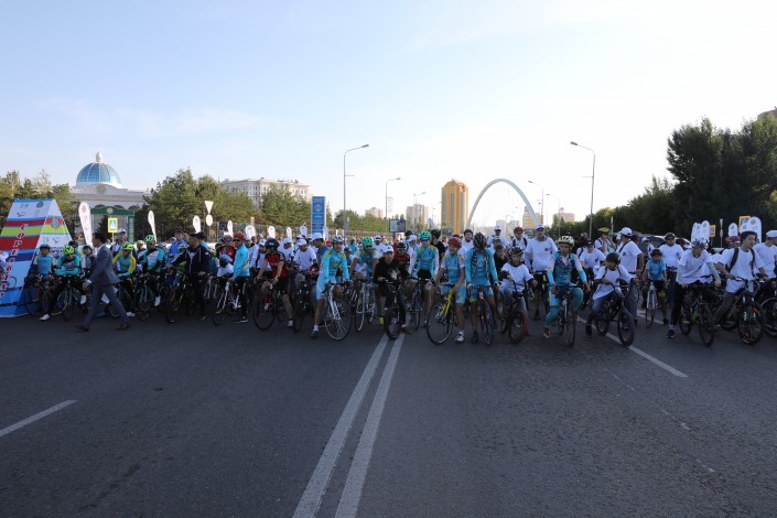 Астанчане проехали на велосипедах дистанцию 5 километров по проспекту Кабанбай батыра от Дворца "Салтанат Сарайы" до стадиона "Астана Арена". В заезде приняли участие руководитель Управления культуры и спорта города Астаны Болат Мажагулов и руководители столичных спортивных школ.