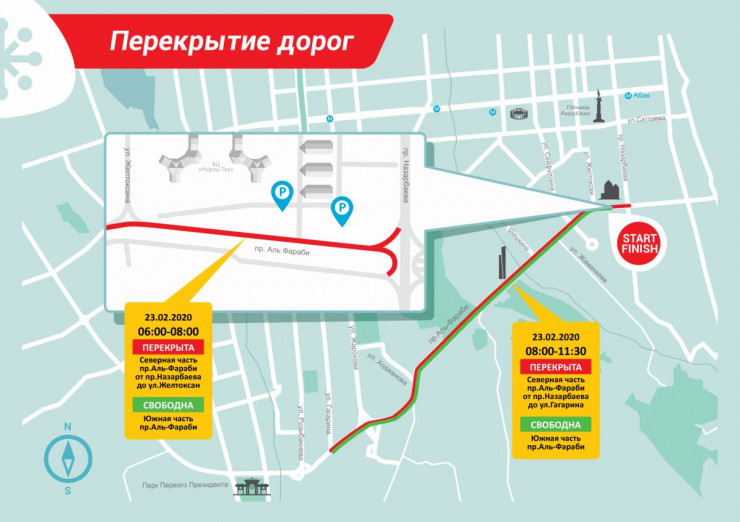 Организаторы просят жителей и гостей города отнестись с пониманием и заранее спланировать свой маршрут по проспекту Аль-Фараби 23 февраля.