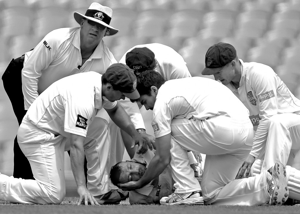 Третье место было присуждено фотографии, на которой игроки команды по крикету "Новый Южный Уэльс" оказывают помощь Филиппу Хьюзу. Он получил удар в голову после подачи в первый игровой день матча против "Южной Австралии" на "Сидней Крикет Граунд". С поля Хьюз был отправлен в госпиталь. После операции он был помещен в состояние искусственной комы. Не приходя в сознание, спортсмен скончался 27 ноября 2014 года, за три дня до 26-го дня рождения.