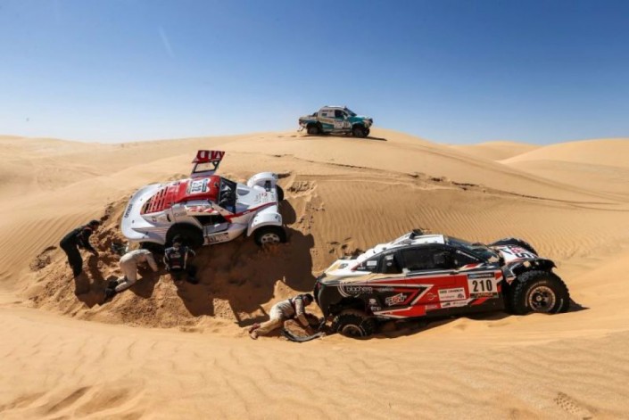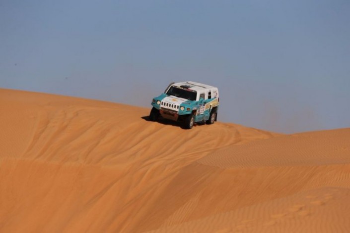 Шагиров и Евтехов, вышедшие в лидеры абсолютного зачета после пятого этапа, выигрывают у Томассе и его штурмана Паскаля Ларока, которые идут вторыми, почти 25 минут - 24:48. Соответственно, казахстанский экипаж первый и в зачете внедорожников.