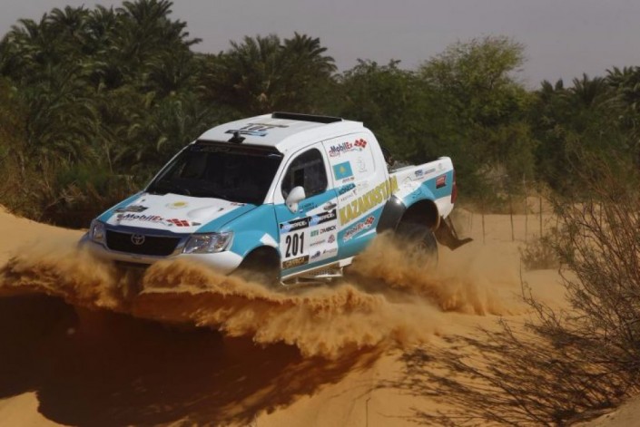 Казахстанский гонщик Канат Шагиров вместе со своим штурманом Виталием Евтеховым представляющий команду Mobilex Racing и выступающий на Toyota, сохранил лидерство в абсолютном зачете (зачет внедорожников и грузовиков) ралли-марафона Africa Eco Race-2016 по итогам восьмого этапа, сообщает спортивный портал Vesti.kz.