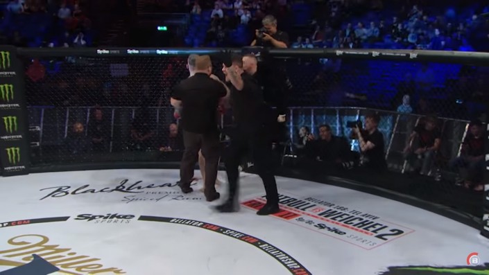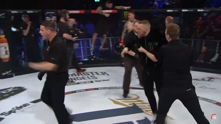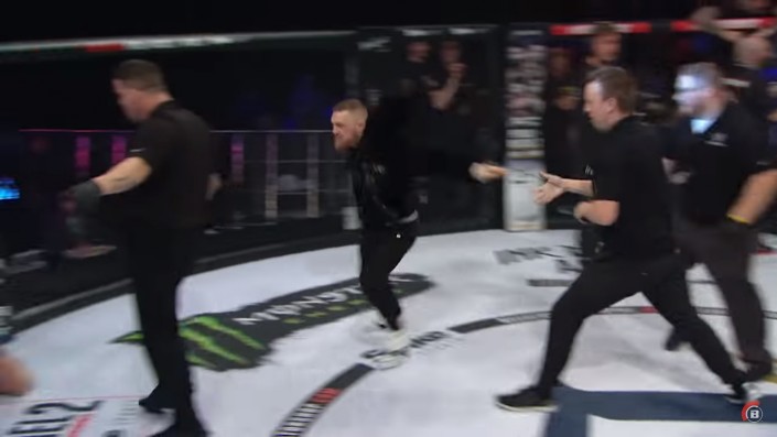 Чемпион UFC в легком весе Конор МакГрегор устроил потасовку в октагоне на турнире Bellator 187, который проходит с 10 на 11 ноября в Дублине. Об этом сообщает Eurosport.