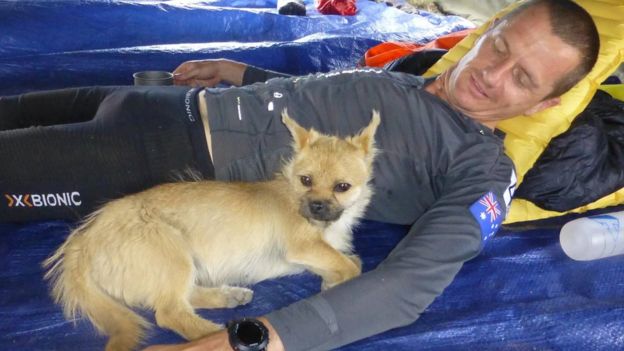 В июне 2016 года маленький рыжий пес присоединился к марафонцам в пустыне Гоби. Дворняга привязалась к Диону, бежала, ела, пила и даже спала рядом с ним, несмотря на жару и сложный маршрут. И так вплоть до финишной черты.
