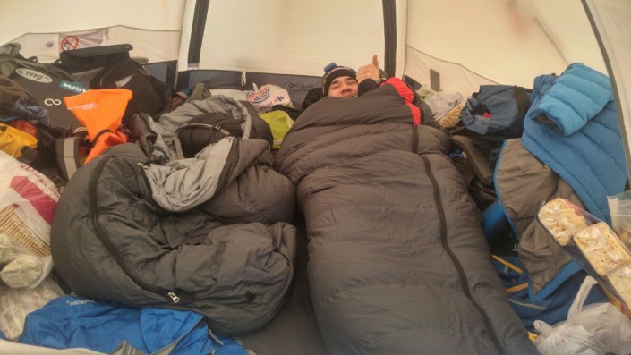 "Мы добрались до "Плаза де Мулас". Меня "колбасит", но в целом все хорошо", - первым прокомментировал итоги перехода из лагеря "Конфлюэнция" в "Плаза де Мулас" Магжан Сагимбаев.