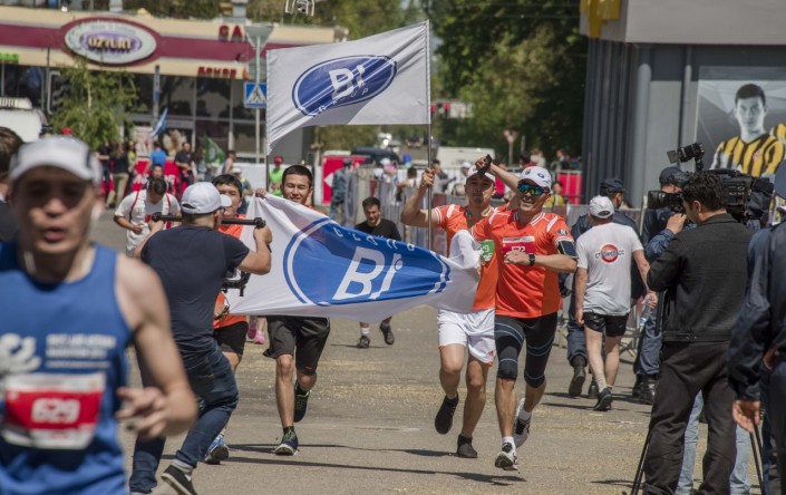 BI Group стала одной из самых многочисленных и креативных компаний среди принявших участие в марафоне: команда участников забега в оранжевых футболках и команда группы поддержки в белых стучали в барабаны, танцевали спортивные танцы, размахивали флагами и скандировали девиз компании, провожая на старт своих бегунов. Благотворительную инициативу и спортивный дух марафона в Алматы поддержали 94 сотрудника BI Group, принявшие участие на различных дистанциях марафона, причем 13 человек пробежали полный марафон (42 километра), в том числе первый руководитель компании Айдын Рахимбаев. А сотрудник BI Group из Астаны Айдын Касен стал абсолютным чемпионом Алматы-марафона!