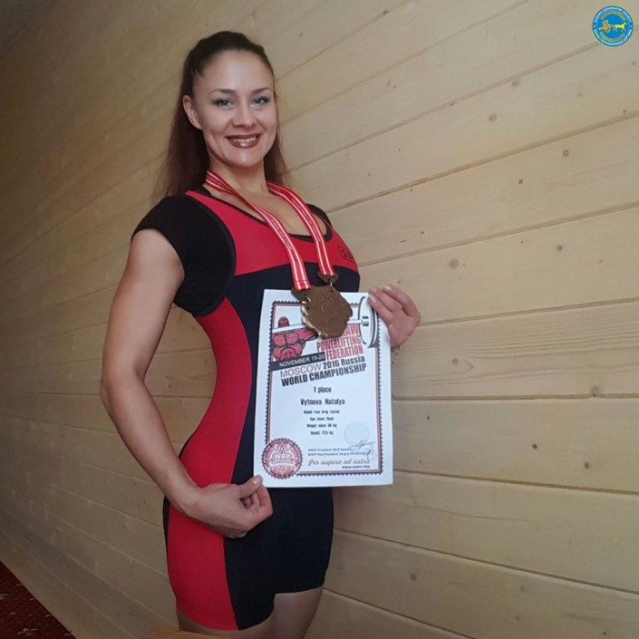 Чемпионат мира проходил в Москве на ВДНХ. В нем участвовали 15 представителей Казахстана. "Наталья Вытнова - мастер спорта по тяжелой атлетике и мастер международного класса по жиму лежа. По образованию - спортивный врач (кинезиотерапевт-реабилитолог). 30 лет в спорте, в течение которых многократно побеждала в мировых и казахстанских первенствах. Например, всего две недели назад Наталья завоевала золото на чемпионате Азии. Запомните это имя! Желаем Наталье новых побед и великолепных достижений!" - написано на странице Казахского географического общества.