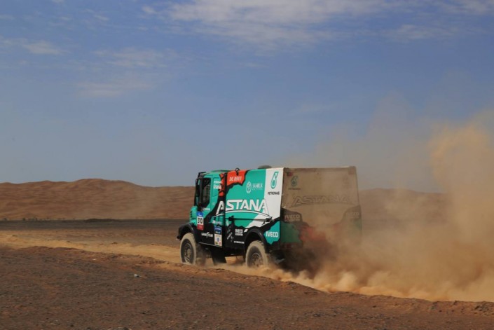 Команда Astana Motorsports продолжает удерживать пятое место в общем зачете ралли "Шелковый путь". Девятый этап гонки гонщики заканчивают на седьмом месте. В генеральной классификации грузового зачета лидируют три машины "КамАЗ" и "Татра" Мартина Коломы соответственно, сообщают Vesti.kz со ссылкой на пресс-службу Президентского клуба "Астана".
