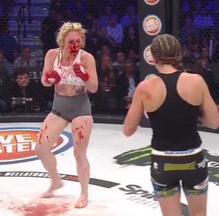 "Нос Хизер Харди разнесло по всему лицу. Врачи остановили бой. Потрясающий дебют Кристины Уильямс!", - пишет MMA Today.