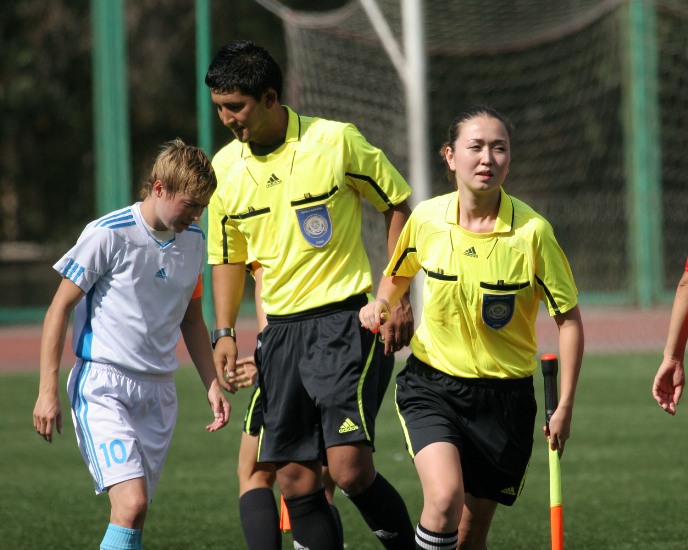 Алматы Футбол Федерациясында төреші болып қызмет еткен Еркежан Бараева футболшы болу арманын анасы су сепкендей басқанын айтады.