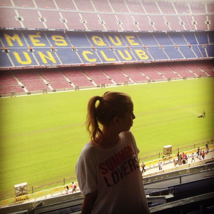 Камп Ноу стадионындағы "Барселона" футболшыларының киім ауыстыру бөлмесінде түсірілген сурет.