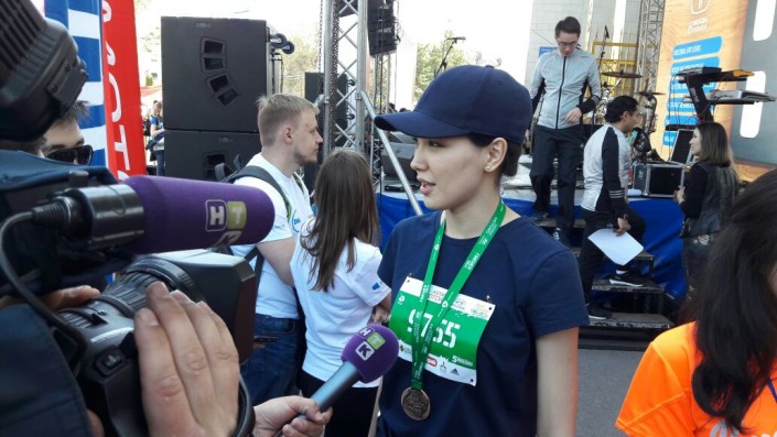 "Я готовилась где-то месяц, это не очень хорошо, нужно готовиться заранее. Когда рядом с тобой бегут 20 тысяч человек, ты не чувствуешь усталости, а только эмоции, поддержку со всех сторон", - поделилась актриса.