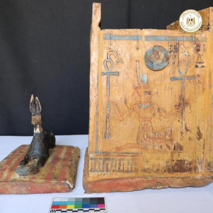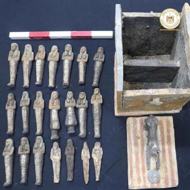 Саркофаги найдены в 22 ямах на глубине от 10 до 12 метров в хорошем состоянии. Помимо этого, археологи нашли статуи, игрушечные лодки и погребальные маски. Также в списке находок - четырехметровый свиток с текстом из "Книги мертвых", эти тексты предназначались для умерших, чтобы они могли найти путь в потустороннем мире.