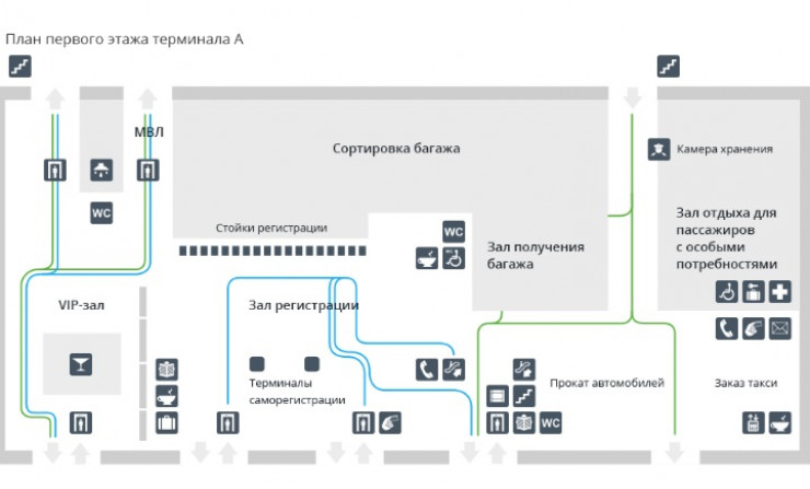 Доступны пассажирам шесть внутренних рейсов: в города Ош, Баткен, Джалал-Абад и Исфана, который недавно был переименован в Раззаков.