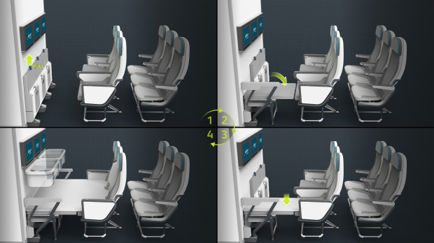 7. Также дизайнеры предлагают установить в самолетах инвалидные кресла, совмещаемые с пассажирским местом. То есть пассажиры могут добраться от аэропорта до самолета, прикрепиться к указанному месту, а после спокойно выехать по прибытии.