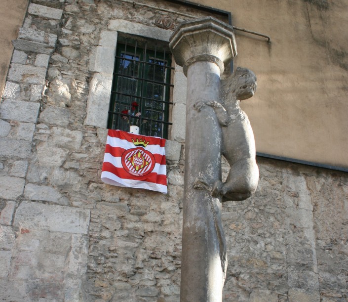 К точной копии колонны мы подошли на городской площади. Оказалось, с этим местом связана легенда по получению уже полноценного жиронского гражданства. Это был самый дешевый и простой способ. Правда, здесь жиронцы усложняли задание - смазывая колонну жиром, чтобы затруднить подъем потенциальному соискателю. Но если тот поднимался и все-таки целовал пятую точку жиронской львицы, то ему выдавали разрешение и он становился жителем Жироны (эх, современным иммигрантам такую бы систему). А кому это не удавалось, тот все равно мог приезжать сюда и просто заниматься коммерцией (что ж, тоже вариант). Кстати, человек, который ваял эту львицу, по всей видимости, царя зверей не видел, его скульптура больше напоминает испуганное домашнее животное.