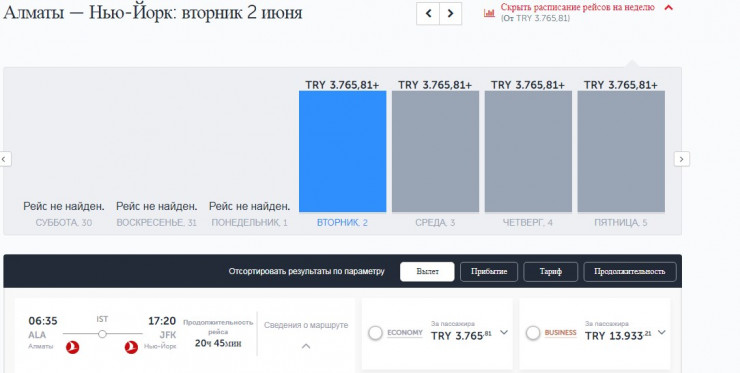 Turkish Airlines продает билеты по маршруту Алматы - Стамбул и обратно с 1 июня. Рейсы Анталья - Алматы начинаются с 31 мая, обратно можно вылететь с 1 июня. На некоторые рейсы билеты уже распроданы.