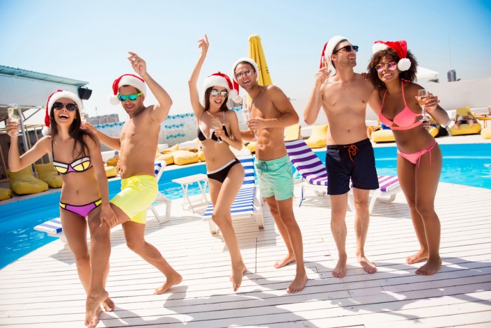 Индонезия на Новый год. Бали или "Остров Богов" находится в Индийском океане и соединяет в себе джунгли, водопады, потухшие вулканы, рисовые поля на горных террасах и, конечно, белоснежные песчаные пляжи. Новый год среди цветущей природы, на берегу океана оставит самые яркие впечатления. Праздничный банкет для отдыхающих организуют в отелях, на пляже, в ночных клубах. На острове субэкваториальный климат. В воде круглый год 26-28° - вот где на Новый год теплое море, а в воздухе до 30°. Среди минусов отдыха на Бали - дорогой и длительный перелет, да еще неразвитая транспортная сеть. На такси по острову не наездишься, пешком далеко, поэтому удобнее всего арендовать байк.