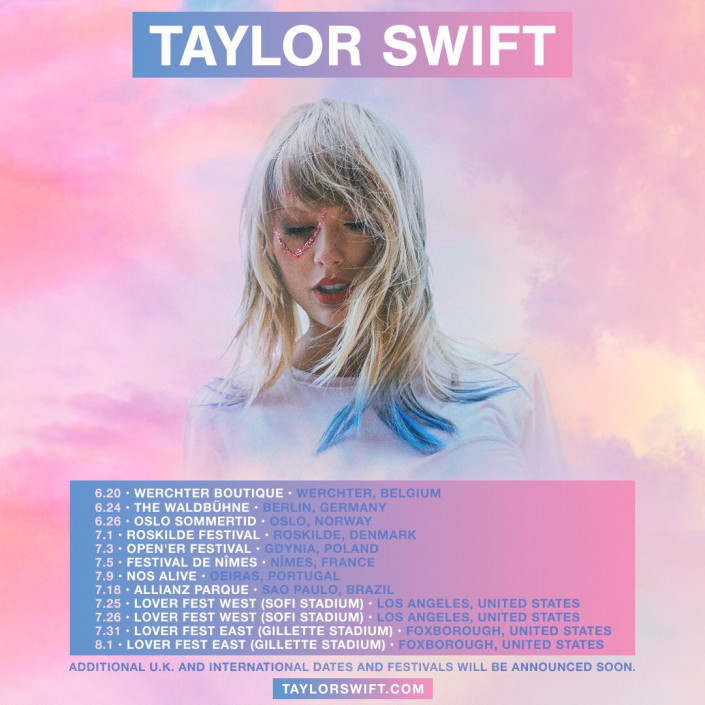 Для американских фанатов певица приготовила четыре концерта Lover Fest West и Lover Fest East, которые пройдут 25 и 26 июля на новом SoFiStadium в Лос-Анджелесе, а также 31 июля и 1 августа на стадионе Gillette в Фоксборо, штат Массачусетс.