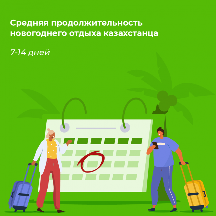 Средняя продолжительность новогоднего отдыха казахстанца составляет 7-14 дней.
