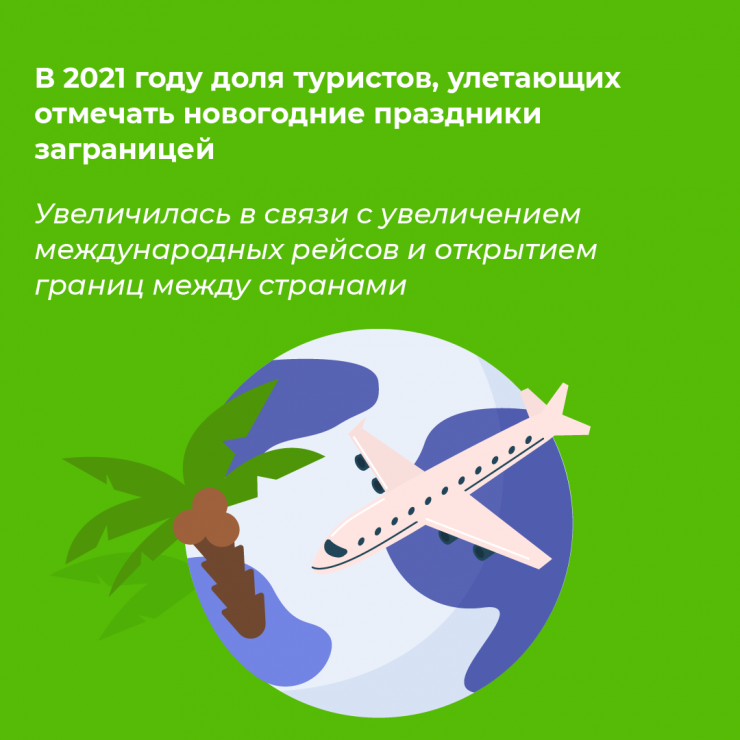 Количество туристов, улетающих отмечать новогодние праздники за границей в 2021 году, стало больше в связи с увеличением числа международных рейсов и открытием границ между странами.