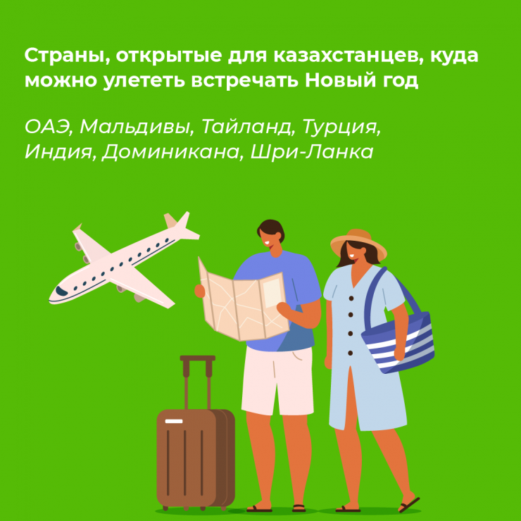 Для встречи Нового года казахстанцам доступны такие страны, как ОАЭ, Мальдивы, Таиланд, Турция, Индия, Доминикана, Шри-Ланка. Отметим, информация о доступных для путешествий странах актуальна на момент публикации, т. е. 27 декабря 2021 года. Перед приобретением билетов и вылетом пользователям необходимо проверять актуальность данных о доступных направлениях.
