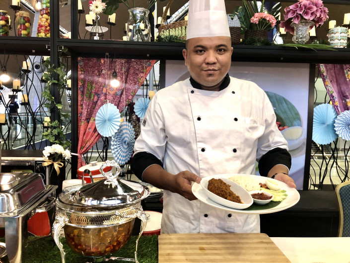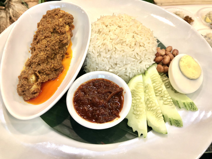 Малайзийскую кухню представляла отбивная курица в сухом кокосе. Приготовление этого блюда занимает более трех часов, это время нужно, чтобы сухой кокос и курица плотно слились и не расплылись в масле. Традиционный малайзийский рис также готовится на кокосовом молоке.
