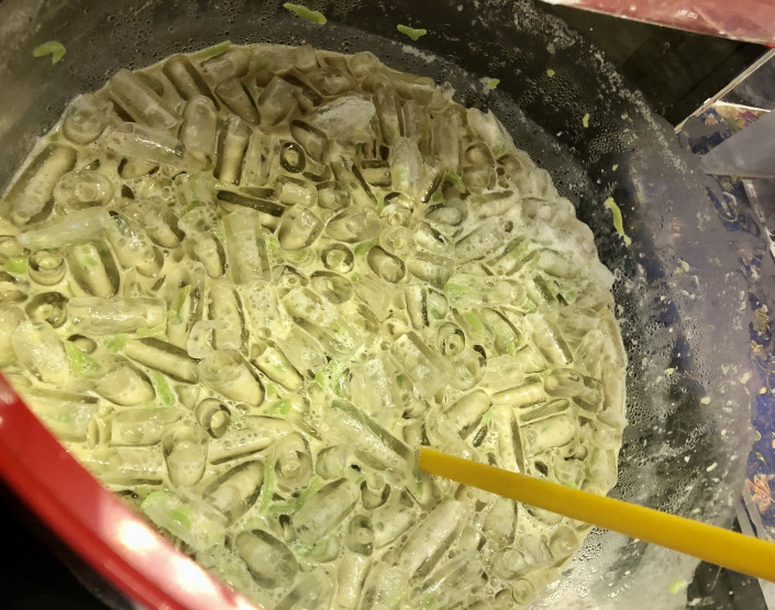 На глазах у посетителей международного мероприятия 30-летний алматинец приготовил и необычный бешбармак в удобной порционной подаче в виде равиоли. Такую круглую форму он выбрал, чтобы сотням посетителей было удобнее попробовать казахское национальное блюдо. Остальные традиционные ингредиенты были сохранены. Зеленый лук, помидор черри и казы идеально сочетались между собой.
