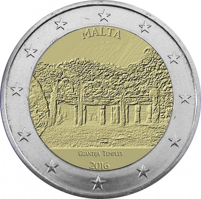 Впрочем, уже в следующем, 2016 году, ситуация изменилась. Центральный банк Мальты заявил о поэтапном выпуске серии памятных монет "Мальтийские доисторические комплексы". Так как собственного монетного двора островная республика не имеет, их было решено отчеканить во Франции. В рамках серии планируется выход семи "двухевровиков". По воле судьбы на первых трех из них оказались те мегалиты, о которых я теперь знаю не понаслышке. Кстати, и посещал я их в той же последовательности, как выходили монеты: это Джганти́я, Хаджар-Им и Мнайдра.