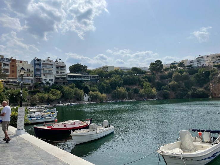 Это место изначально считалось рыбацким пристанищем. И назвали его в честь Святого Николая - покровителя моряков. В городе есть небольшое пресное озеро Вулисмени, соединенное с морем. Вода в озере соленой не стала - оно по-прежнему пресное, и здесь, в паре метров от моря, плавают дикие утки.