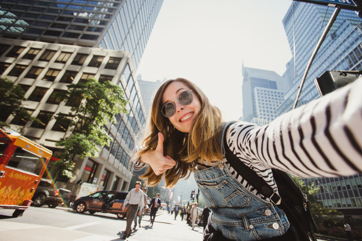 Туристка на фоне нью-йоркской улицы, @Shutterstock