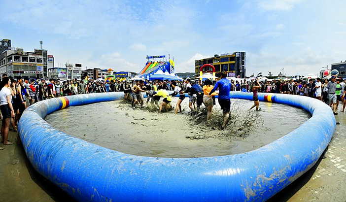 Все желающие смогут покататься на специальных лыжах вдоль береговой линии, а также поучаствовать в 10-километровом марафоне с препятствиями. Марафон Mud Run проверяет гостей на скорость и выносливость, маршрут пролегает через 12 различных препятствий, каждое оборудовано емкостью с грязью. Центральная площадка фестиваля (Mud Experience Land) расположена на городском пляже Тэчхон. Здесь можно попробовать различные виды грязевых удовольствий - борьбу, танцы, грязевые гонки, даже грязевую тюрьму. Одна из самых популярных программ фестиваля - роспись лица и тела цветной грязью.