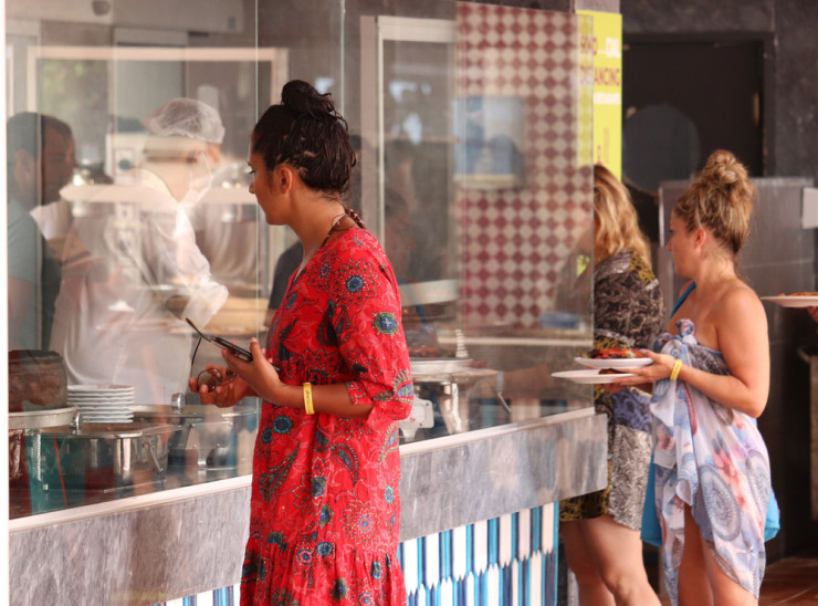 Отныне туристы в ресторанах отелей получают блюда из закрытых стеклянных витрин из рук персонала, в отличие от ранее общепринятого шведского стола. Однако количество подходов по-прежнему не ограничено. Также в залах должны быть разметки для соблюдения социальной дистанции и соответствующим образом расставлены столы. В некоторых отелях стеклянная посуда и металлические приборы заменены пластиковыми.