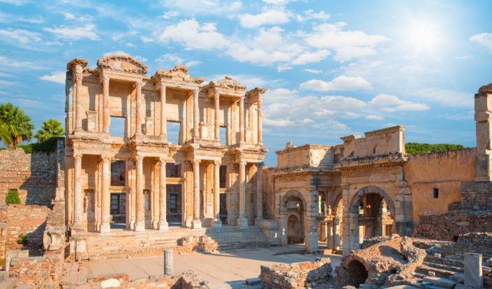 Эфес - один из самых больших античных городов, сохранившийся до наших дней. Он находится на побережье Эгейского моря недалеко от знаменитых курортов Мармарис и Бодрум. Археологи обнаружили здесь множество античных достопримечательностей, таких, как развалины храма богини Артемиды, который считался одним из Семи чудес света, храм римского императора Адриана, храм бога плодородия Сираписа, фонтан императора Трояна, Большой Театр, на сцене которого проводились бои гладиаторов, руины святилища нимф, развалины бань, гимназий и легендарную библиотеку Цельса, которая была построена в 117 году нашей эры. Кроме того, недалеко от города примерно в 10 километрах находятся дом, где по легенде жила Дева Мария, а рядом с ним есть источник Девы Марии. Люди верят, что вода в нем обладает целительными свойствами.