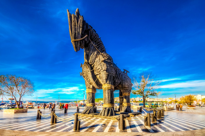 Троя. Гомер воспевал этот город в знаменитых "Илиаде" и "Одиссее", и возможно, нет в мире человека, который не знал бы о Троянском коне, благодаря которому хитрые греки захватили Трою. Развалины этого легендарного города находятся в 30 километрах к югу от города Чанаккале, у входа из Эгейского моря в пролив Дарданеллы. Из более менее сохранившихся достопримечательностей здесь можно посетить храм Афины, концертный зал Одеон, а также увидеть и сфотографироваться с легендарным Троянским конем. Правда, это всего лишь деревянная копия, но местные говорят, что она ничем не уступала бы оригиналу.