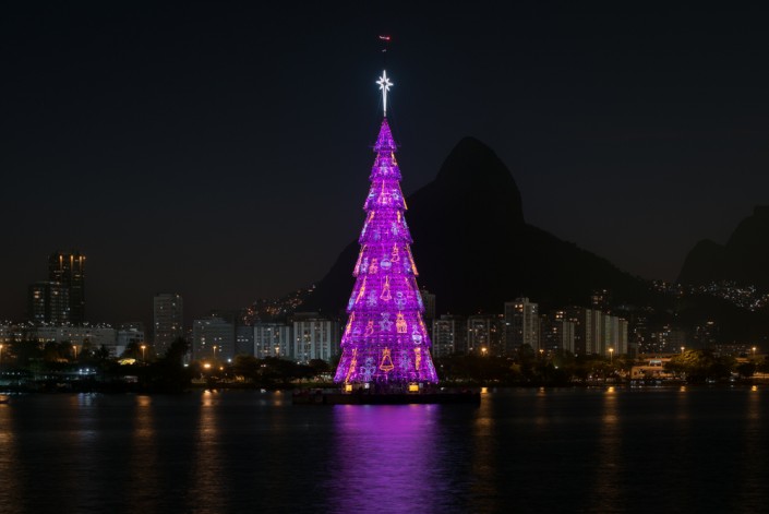 Рио-де-Жанейро, Бразилия. Жаркая страна не может похвастаться наличием зеленых красавиц, поэтому находчивые бразильцы устанавливают ее искусственную копию, не на суше, а прямо на воде, на озере Лагоа-Родригу-ди-Фрейташ. Металлический каркас может выдержать гораздо больший вес, чем настоящая елка, а потому правительство Бразилии не боится украшать ее всевозможными громоздкими световыми инсталляциями. Впервые такая необычная рождественская елка порадовала жителей и гостей Рио в 1995 году. С тех пор это стало доброй праздничной традицией города. К настоящему времени величественная красавица не только вошла в список главных новогодних достопримечательностей Рио-де-Жанейро, но и попала в Книгу рекордов Гиннесса как самая большая плавучая новогодняя ель в мире.