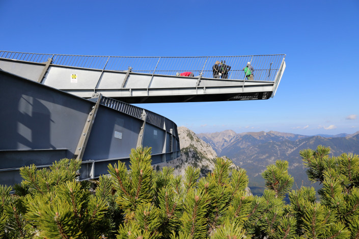 Смотровая площадка Альпшпитце (Германия) - это два скрещенных дугообразных балкона-моста длиной 13 метров, выступающих над километровой пропастью. Несмотря на то что обе части сооружения прочно вмонтированы в скалу и безопасность туристов обеспечивают надежные перила, владельцы называют эту смотровую площадку самой экстремальной в мире. Когда ступаешь по решетчатому полу, кажется, что конструкция слегка колеблется под ногами. А частый в этих местах порывистый ветер добавляет ощущение беспомощности. Но ради красивейшей панорамы горных пейзажей, ради возможности посмотреть на облака сверху вниз стоит побороть страх!