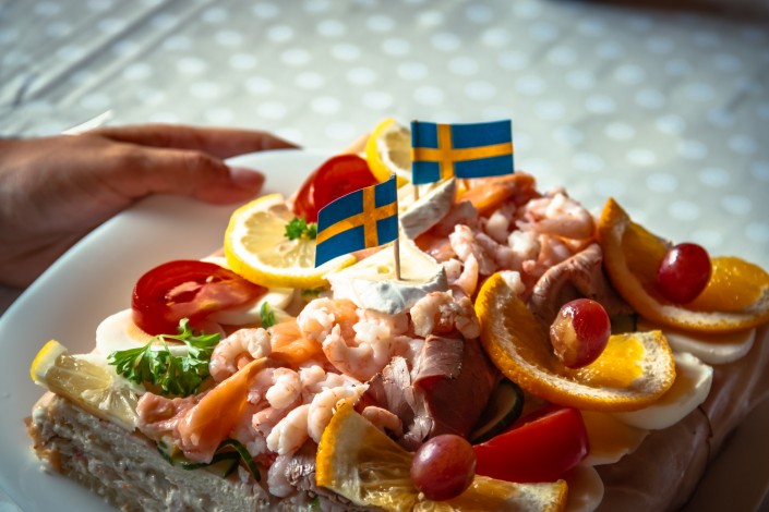 Здесь же вы сможете попробовать знаменитые шведские блюда, такие как смергасторте - торт-сэндвич и лучшие в мире фрикадельки. Смергасторте делают из нескольких слоев хлеба, с кремовым наполнением. В него нередко добавляют яйца, майонез, печень, оливки, креветки, ветчину, икру, помидоры, лимон, а также семгу. Подается блюдо холодным, есть вариант и для вегетарианцев.