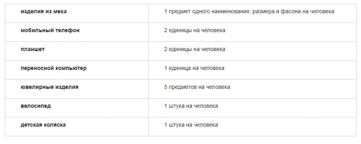 Нормы беспошлинного ввоза товаров для личного пользования в Казахстан. Скриншот с сайта Комитета государственных доходов