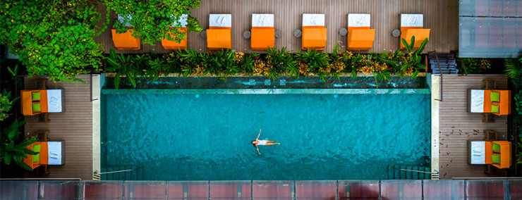 Благодаря конструкции бассейна у постояльцев отеля создается впечатление, что они плавают над деревьями. Расстояние между самым высоким и низким уровнем составляет около 10 метров. Это сооружение получило награду "Лучший в мире бассейн" от Conde Nast Traveller, а также несколько лет удерживает первое место в списке TripAdvisor.