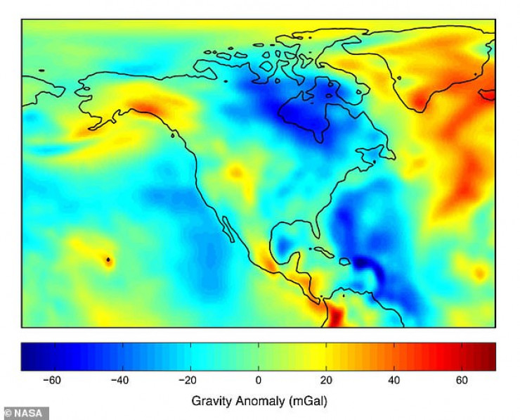 В 1960-м году, когда ученые начали изучение гравитационного поля Земли, предполагалось, что гравитация должна быть одинаковой повсюду на планете, однако обнаружилось, что она может изменяться в зависимости от места. Например, в Канаде есть некоторые районы, где гравитация меньше. Допустим, вы весите 68 килограммов. Около Гудзонова залива весы будут показывать около 67 килограммов.